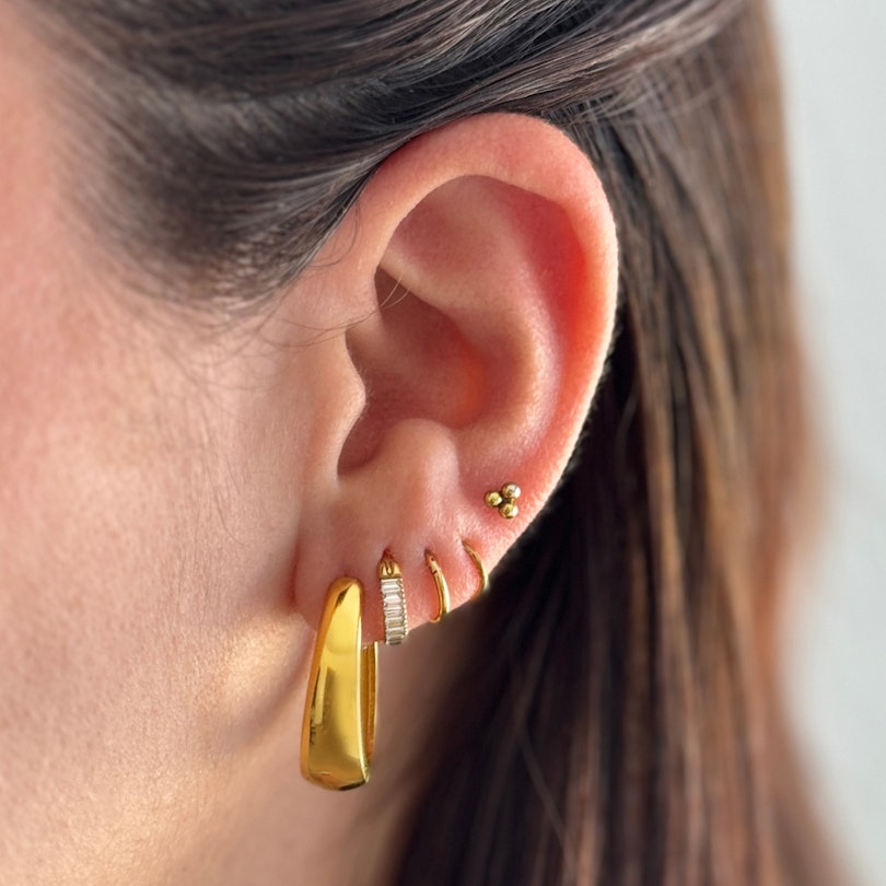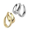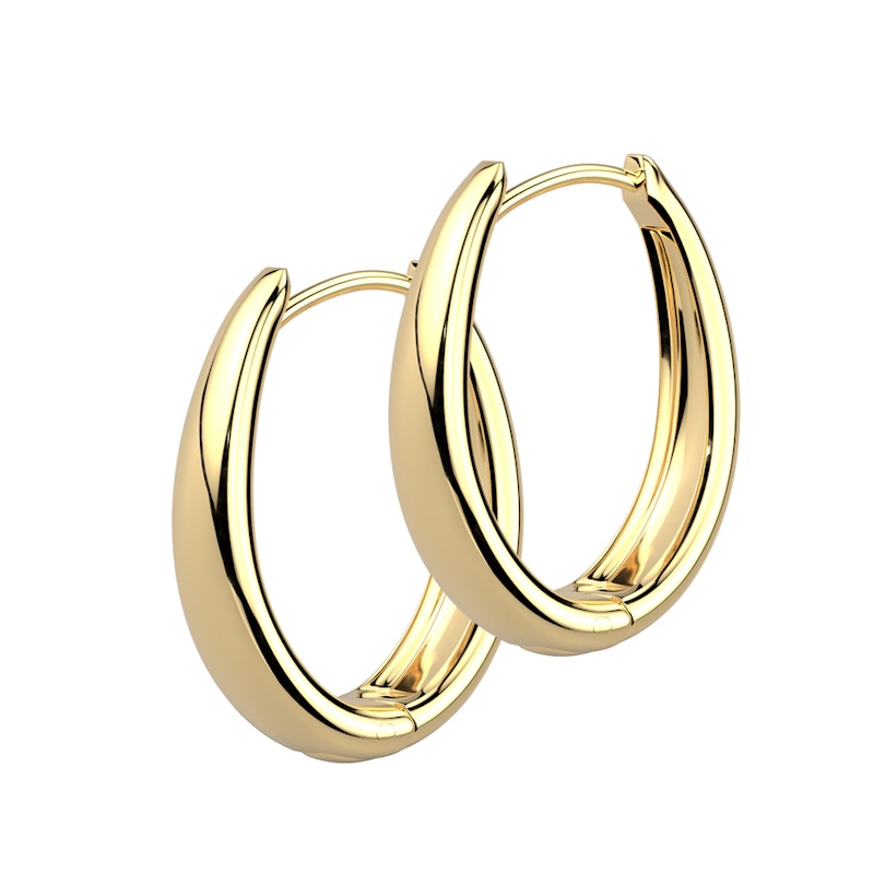 Vai Tu meklē stilīgus auskarus? Aplūko šo ovālo auskaru pāri. Tie izgatavoti no izturīga ķirurģiskā tērauda un Tu vari izvēlēties klasisku zelta vai sudraba krāsas pārklājumu. To unikālais ovālais dizains ir nedaudz platāks rotas apakšdaļā, kas piešķir stilu ar odziņu. Savukārt ērtais aizdares mehānisms ar eņģīti nozīmē, ka tos ir viegli nēsāt. Rotas tiek pārdotas kā pāris un tās uzreiz paspilgtinās Tavu ārieni.