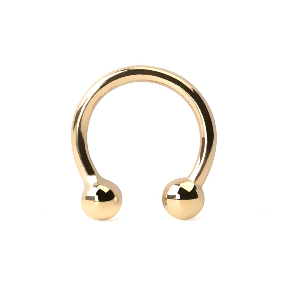 Šis ir burvīgss apļveida stienītis jeb pakaviņš no tīra 14 karātu zelta. Tam ir klasisks dizains, bumbiņveida uzgalis katrā tā galā. Tas ir kā radīts jums, ja mīlat augstas kvalitātes rotaslietas ar vienkāršu dizainu. Apļveida stienīši ir multifunkcionāli; jūs tos varat nēsāt dažādos ķermeņa pīrsingos. Tomēr, tos parasti lieto deguna, uzacs, lūpas un intīmajos pīrsingos.