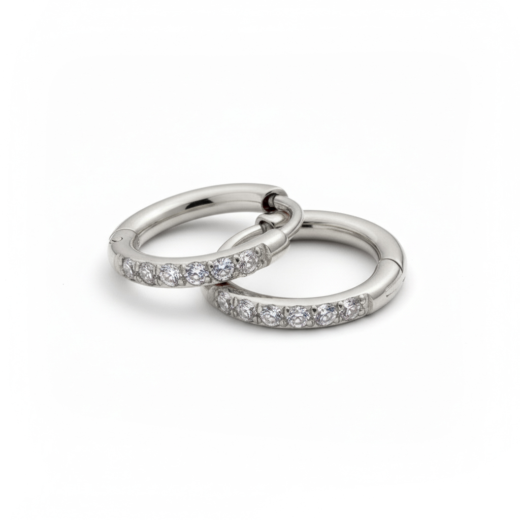 Pāris ar ķirurģiskā tērauda huggie auskariem ar akmentiņiem
