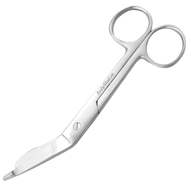 Šīs ķirurģiskā tērauda šķēres ir paredzētas apsēju un citu audumu griešanai. Tām nav ierastās taisnās formas. Šķēru leņķī ieliektie gali ir piemēroti, lai grieztu apsējus.