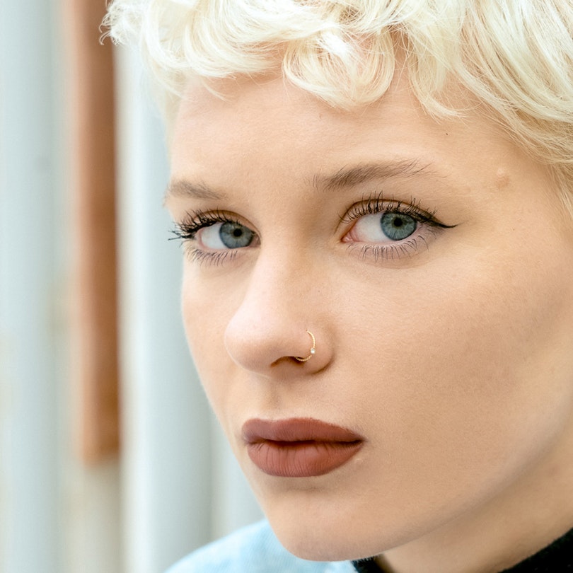 Pīrsingu gredzenam ir pinuma dizains. Tas lieliski izskatīsies, piemēram, deguna pīrsingā. Tu vari izvēlēties starp dažādām materiāla krāsām. Turklāt sudraba krāsas pīrsingu gredzens ir pieejams ar diviem, dažādu krāsu akmentiņiem.