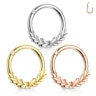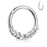 Šis ir ķirurģiskā tērauda pīrsinga gredzens ar eņģi, kura lapiņas izriet no riņķa lejasdaļas un ir virzītas uz malām. Lai būtu iespējams ērti nēsāt šo rotaslietu, vainags nesniedzas pilnībā apkārt riņķim.