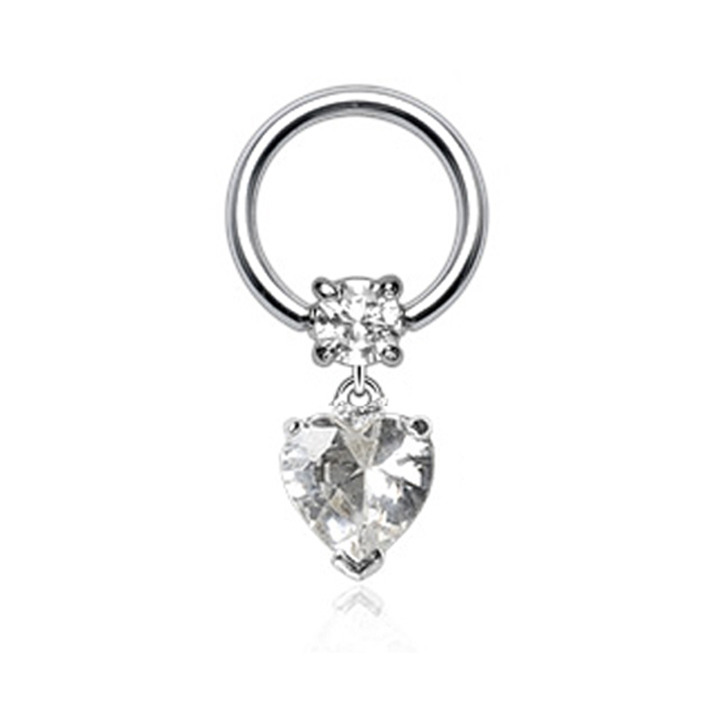Brīnišķīgs CBR jeb pīrsinga gredzens ar bumbiņu, kuru rotā mazs un vienkāršs sirsniņas formas kulons. Šis ir perfekts pīrsinga gredzens Tavam helix vai intīmajam pīrsingam - tas ir neizsakāmi valdzinošs un pievilcīgs. Izgatavots no ķirurģiskā tērauda un to rotā sirds formas kulons ar baltas krāsas kristālu. Kristālam ir dimanta tradicionālās formas slīpējums kas ļaus gaismai atstaroties no dažādiem leņķiem. Esot kustībā, tiešā gaismā, tas mirdzēs tikpat spoži kā saule.