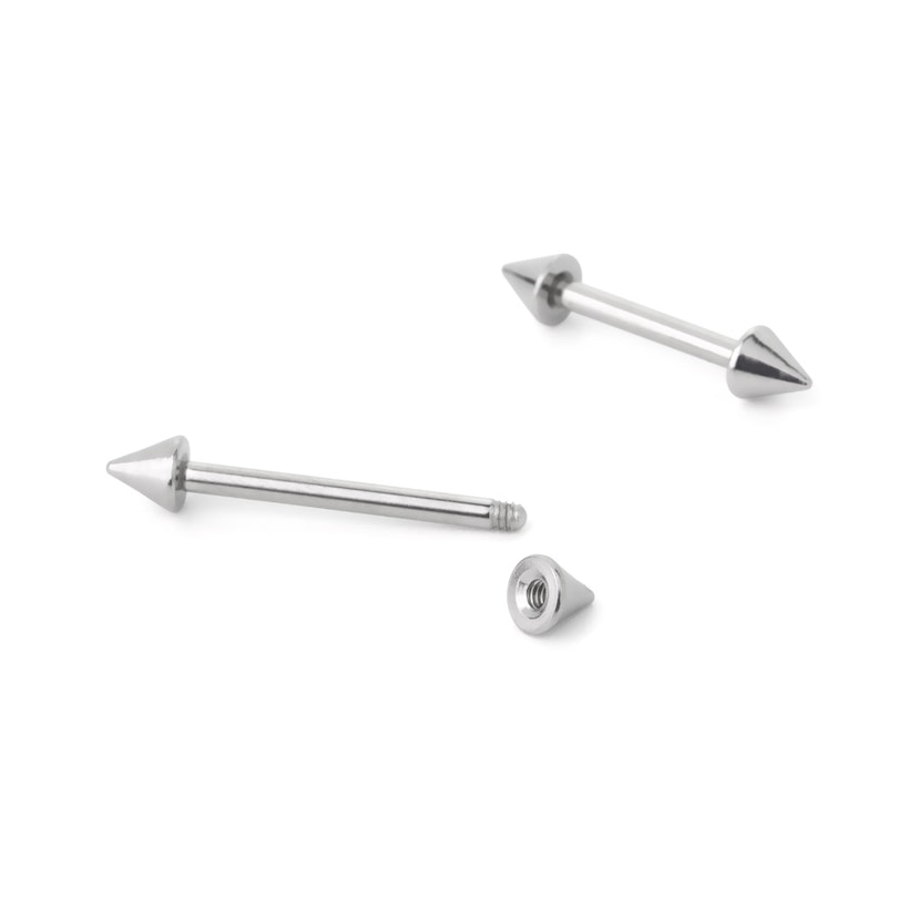 Upgreidojiet savu pīrsingu ar pavisam jaunu un svaigu stilu - ķirurģiskais tērauda stienītis, rotāts ar diviem dzeloņveida uzgaļiem. Parasti jūs atradīsiet standarta stienīšus, rotātus ar bumbiņveida uzgaķiem, bet šeit jums ir iespēja paturēt vienkāršību un tajā pašā laikā, izcelties vistilīgākajā veidā.