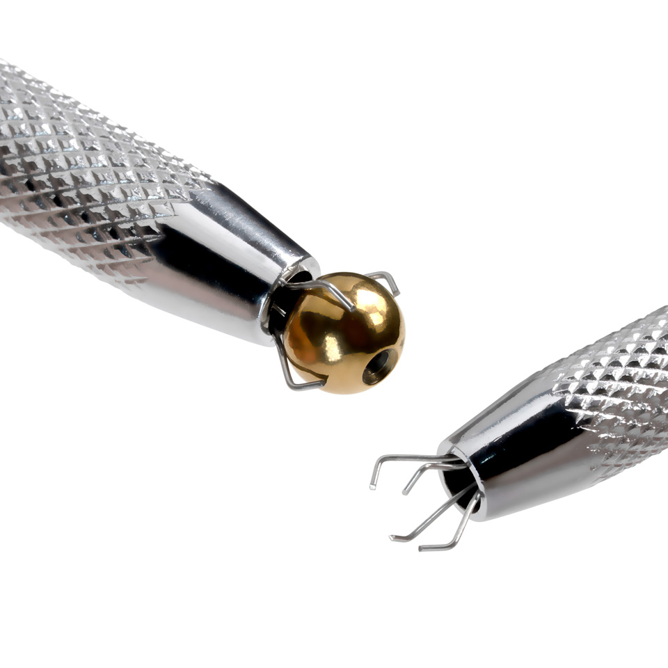 Šim darbarīkam ir četras smalkas ķepiņas, kas nospiežot atveras no rīka gala. Ar šo darbarīku var satvert 3 līdz 6 mm lielas bumbiņas, kamēr Tu uzskrūvē tās uz sava izliektā stienīša, pīrsingu gredzena vai labretes stienīša. Lai varētu darboties ar šo rīku, Tev tikai jāpārliecinās, ka bumbiņas caurums vai skrūvīte ir vērsta uz āru.
