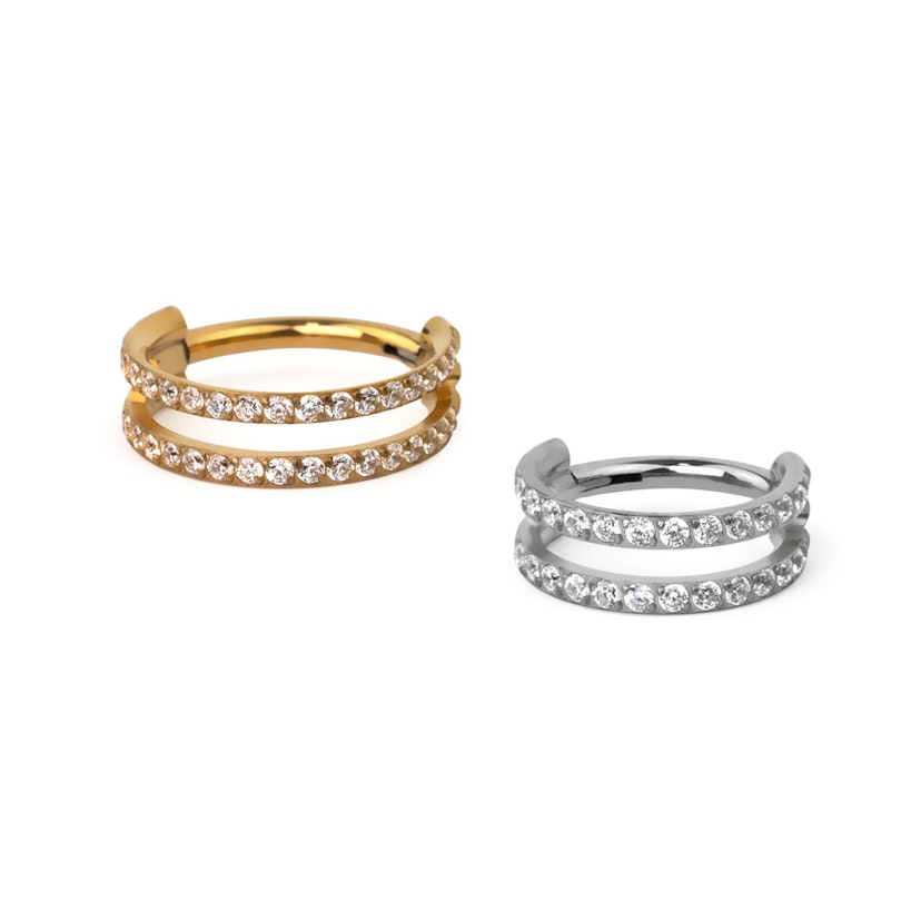 Pīrsingu gredzens ar divām kristāliem pārklātām stīpām