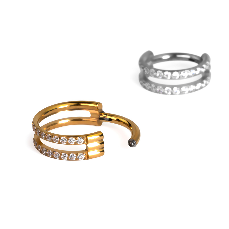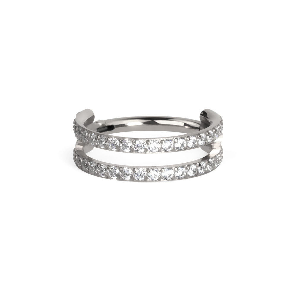 Pīrsingu gredzens ar divām kristāliem pārklātām stīpām