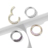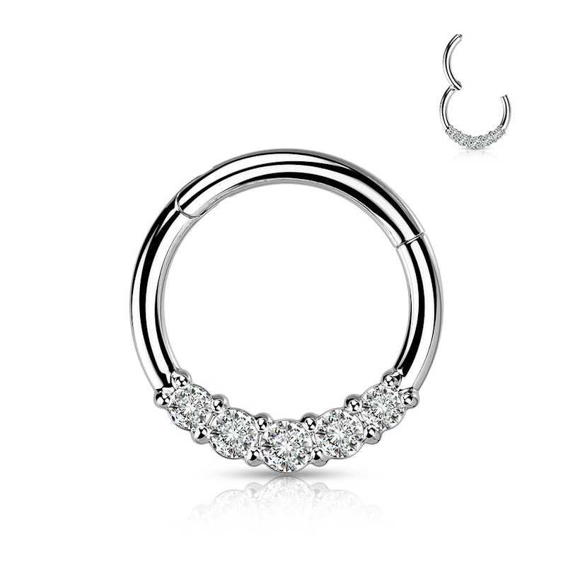 Visiem modeļiem ir vienāds dizains un izmērs, tomēr kubiskā cirkonija kristālu krāsa atšķirsies atkarībā no riņķa krāsas. Šie dzirkstošie kristāli atrodas pīrsingu gredzena priekšpusē, padarot to par ideālu izvēli septum un tādiem auss pīrsingiem kā daith vai tragus. Turklāt šīs rotas izmēri ir piemēroti minētajiem pīrsingiem.