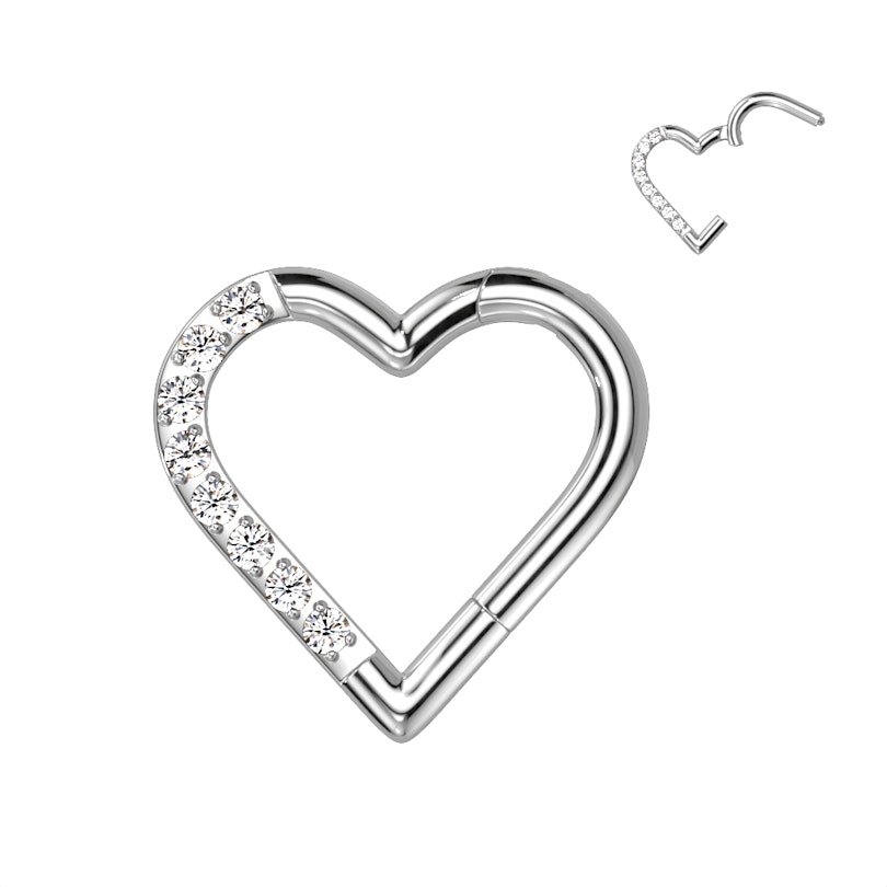 Meklē rotu, kas liktu Tavai sirdij pukstēt straujāk? Iespējams, ka šis pīrsingu gredzens ir tas, ko kāro atrast - sirds formas riņķis, kura vienu pusi dekorē mirdzoši kubiskā cirkonija kristāliņi, piešķirot tam piemīlīgu "bling bling" efektu.