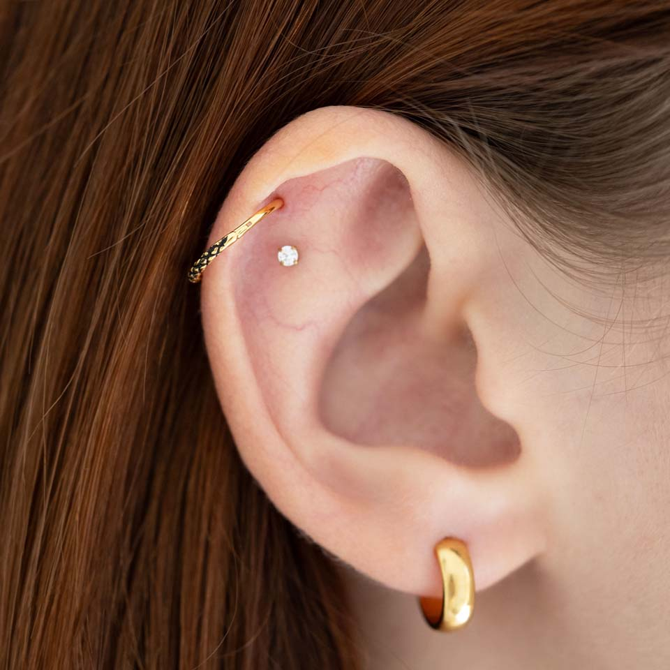 Novietojums: Tragus, Spiderbite, Snakebite, Septum, Rook, Nāss, Lower labret, Auss ļipiņa, Helix, Daith, Forward helix