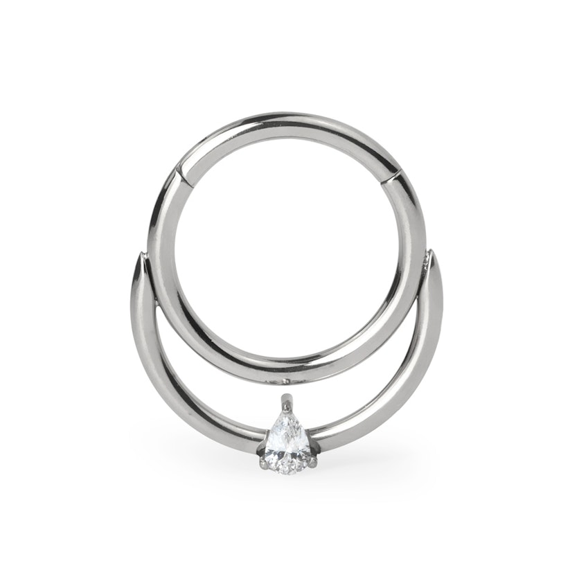 Pīrsingu gredzens ar pusmēness formas loku un lāses formas kristālu