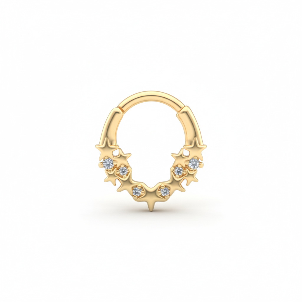 Pīrsingu gredzens ar zvaigznēm un akmentiņiem