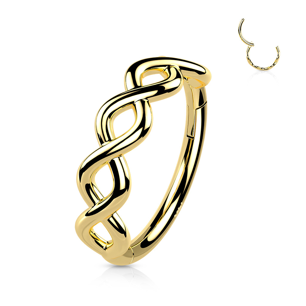 Pīrsingu gredzens no 14K zelta ar eņģīti un bezgalības pinumu