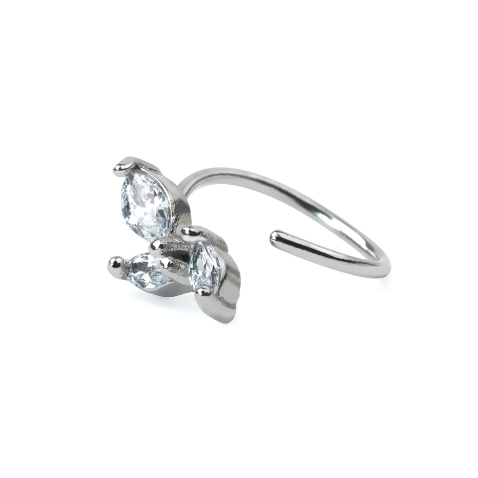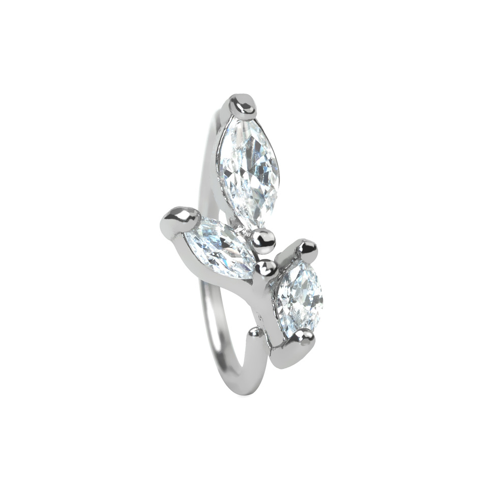 Pīrsingu gredzens no ķirurģiskā tērauda ar trīs ovāliem akmentiņiem