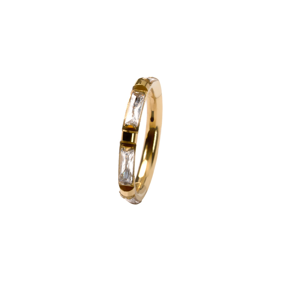 Nosaukums: Pīrsingu gredzens no titāna ar bagetes slīpējuma akmentiņiem