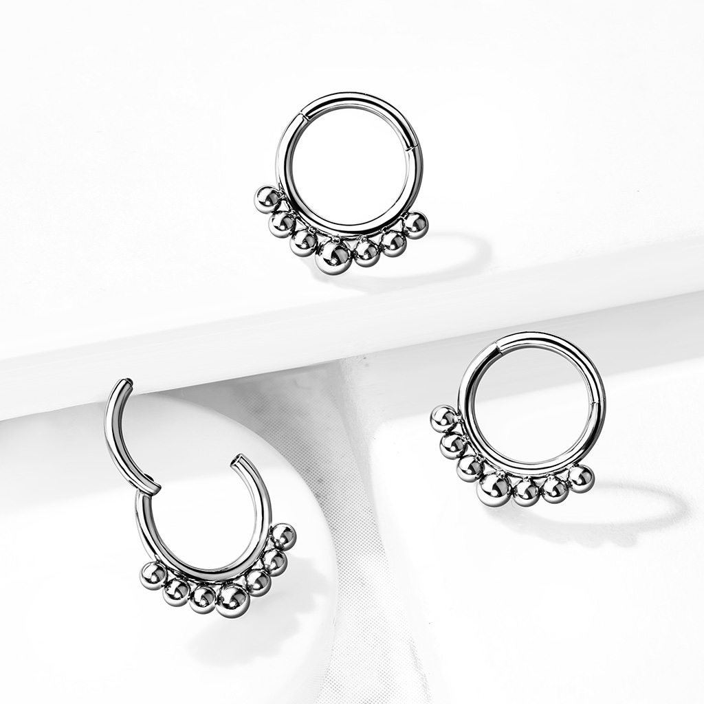 Pīrsingu gredzens no titāna ar eņģīti un lodīšu rotājumu