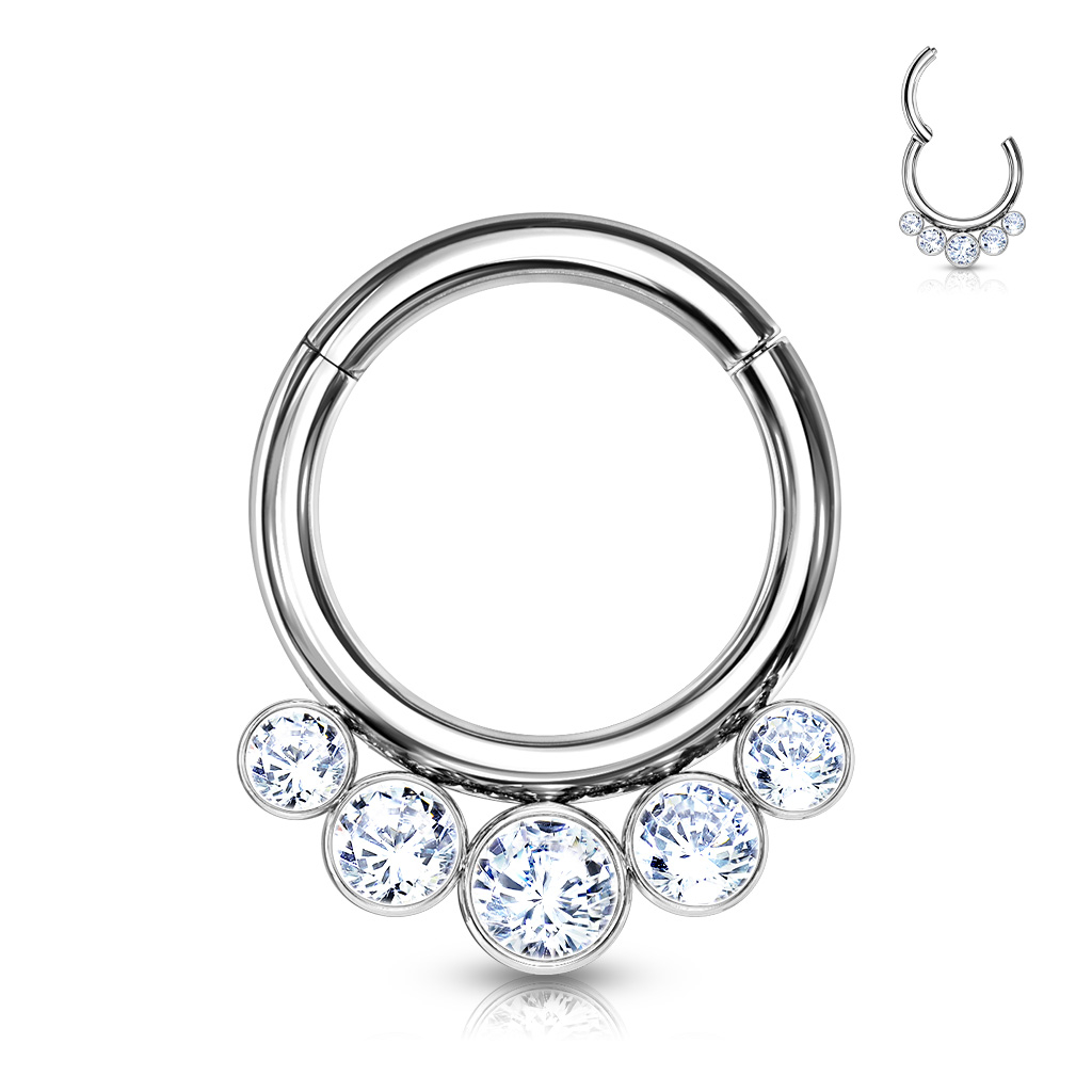 Pīrsingu gredzens no titāna ar eņģīti un pieciem kristāliem