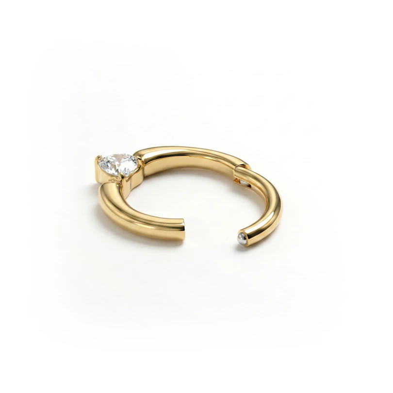 Pievieno savam ear stack smalku akcentu - pīrsingu gredzenu no titāna ar sirds formas akmentiņu. Ikdienas stilam piemērotais minimālistiskais siluets saglabā Tava tēla balansu, savukārt mirdzošā detaļa piešķir nedaudz šarma.