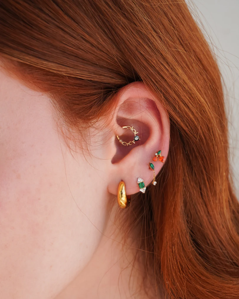 Pieejams ar zelta vai sudraba krāsas pārklājumu. Šis pīrsingu gredzens ir radīts tam, lai mirdzētu Tavā daith, helix, rook vai auss ļipiņas pīrsingā.