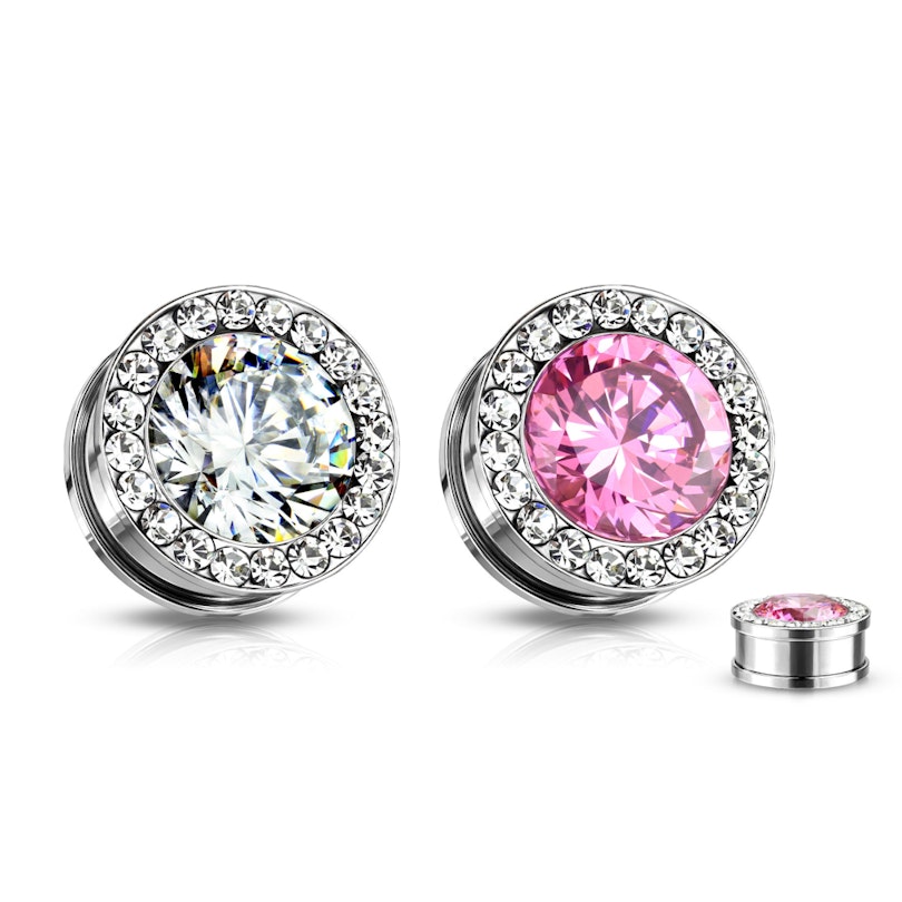 Tuneļi un bling-bling efekts vienmēr veido izcilu kombināciju. Turklāt, lieli kristāli auss ļipiņās, kļūst arvien populārāki. Atklājiet šo skaisto plugu, ar lielu kristālu tā centrā, ieskautu smalku kristāliņu aplī, visiecienītākajās krāsās, ideāls gan vīriešiem, gan sievietēm.