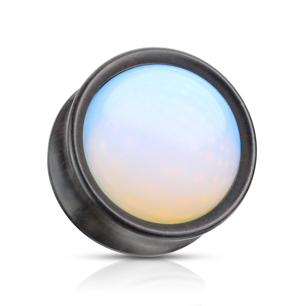 Plugs ir patiess baudījums acīm - tajā satiekas siltās koka nianses ar opalīta akmens pienaini balto krāsu. Attēlā redzamajam opāla akmenim ir dažādas nokrāsas. Tā pamata krāsa ir balta ar zilganām, rozīgām un oranžīgām nokrāsām, atkarībā no tā, kā tas tiek apgaismots.