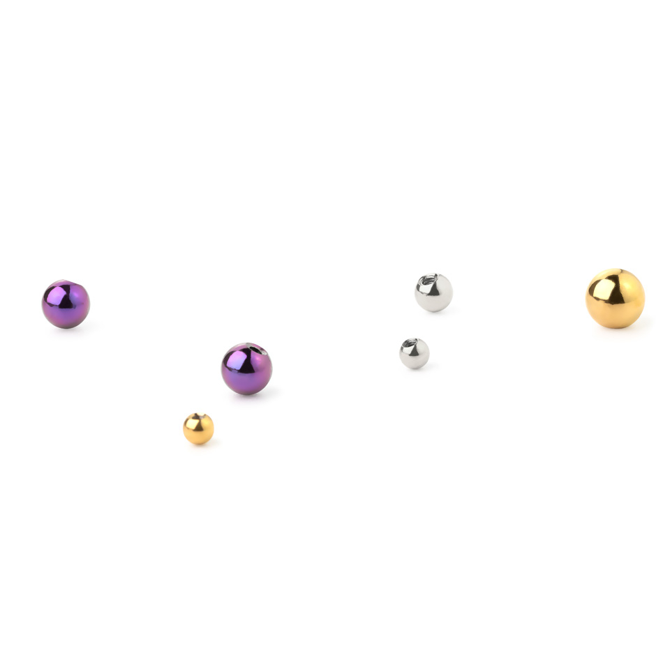 Šie satriecošie bumbiņveida uzgaļi ir izgatavoti no tīra ķirurģiskā tērauda. Tie ir pārklāti ar plānu krāsaina titāna slāni - rezultāts tiek sasniegts, pateicoties jonizēšanas procesam.