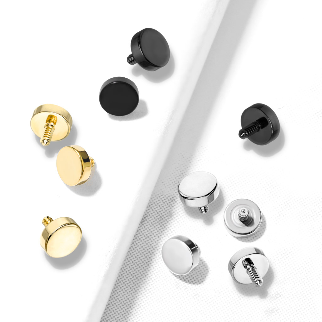 Šis mazais, plakanais disks ir paredzēts lietošanā, iekšēji vītņotam stienītim. Uzgali ieskrūvē stienīti, tāpat kā regulārie uzgaļi. Tas ir piemērots rotaslietām, kuras ir 16g (1.2 mm) biezumā.