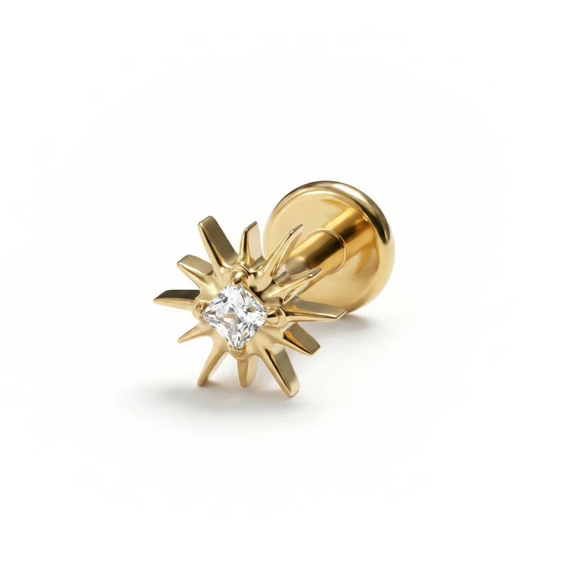Piešķir savam ear stack mazliet mirdzuma ar šo saules staru labreti no titāna. Ziedu iedvesmotais dizains, kas uztver gaismu, padara rotu izteiksmīgāku, vienlaikus saglabājot minimālismu un ļaujot to ērti stilizēt ikdienā.
