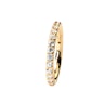 Šis segmentētais gredzens, kas taisīts no cieta 14 karātu zelta, ir pieejams dažādos modeļos - ieskaitot elegantu 14 karātu baltā zelta versiju. Uz ārējās redzamās gredzena malas ir kristālu rieva, kuru veido virkne mazu dzidru kristālu, kas izdekorē rotalsietu patiešām gaumīgā veidā.
