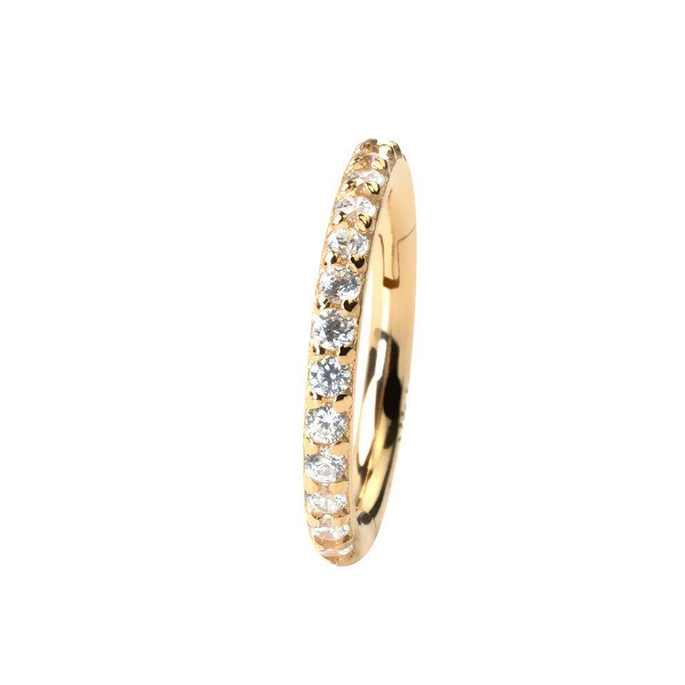 Pīrsinga gredzens ar eņģīti no 14K zelta ar cirkonija kristālu rievu