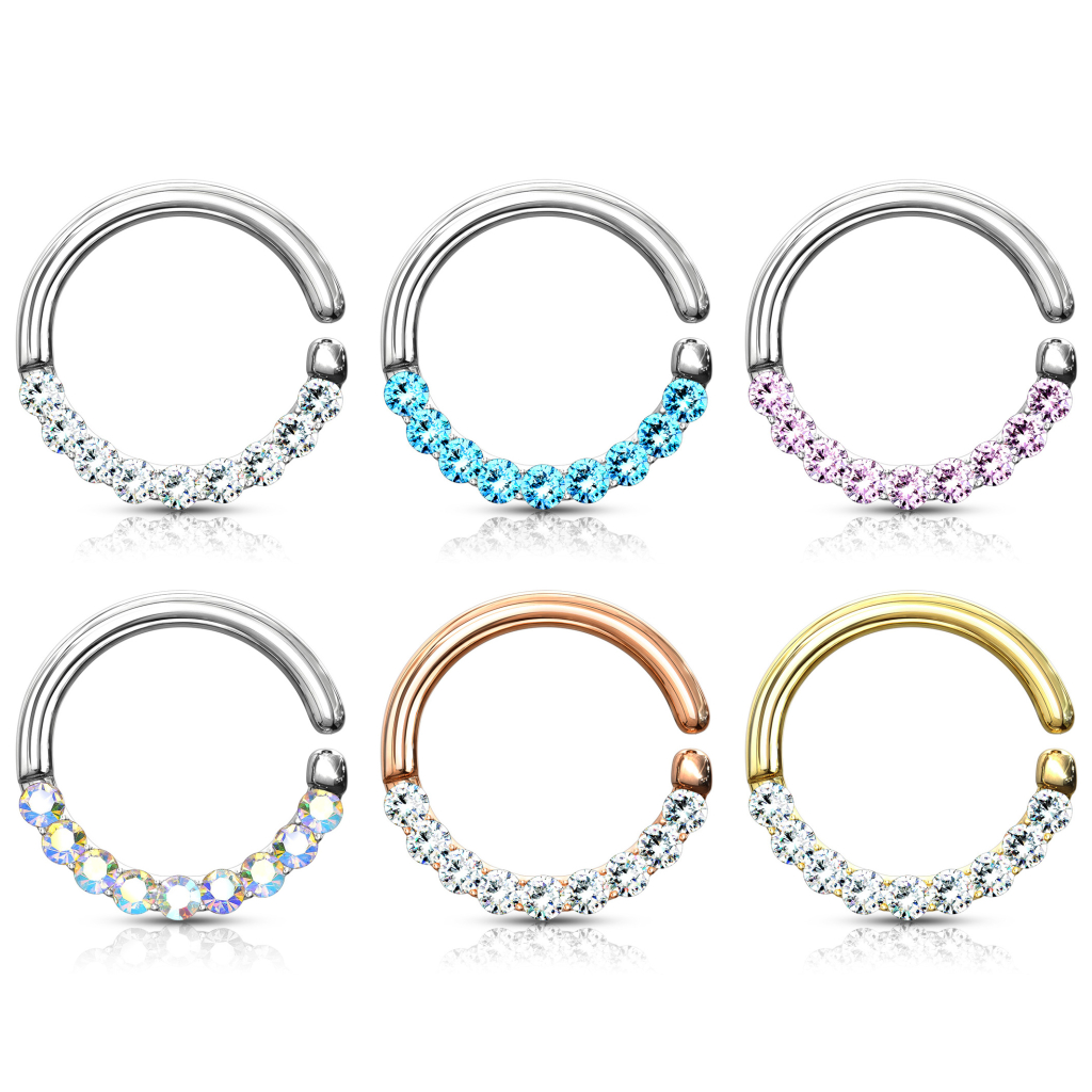 Septum pīrsingu gredzens ar kristāliem pārklātu malu