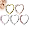 Pīrsingu gredzens sirds formā ar kristāliem pārklātu malu