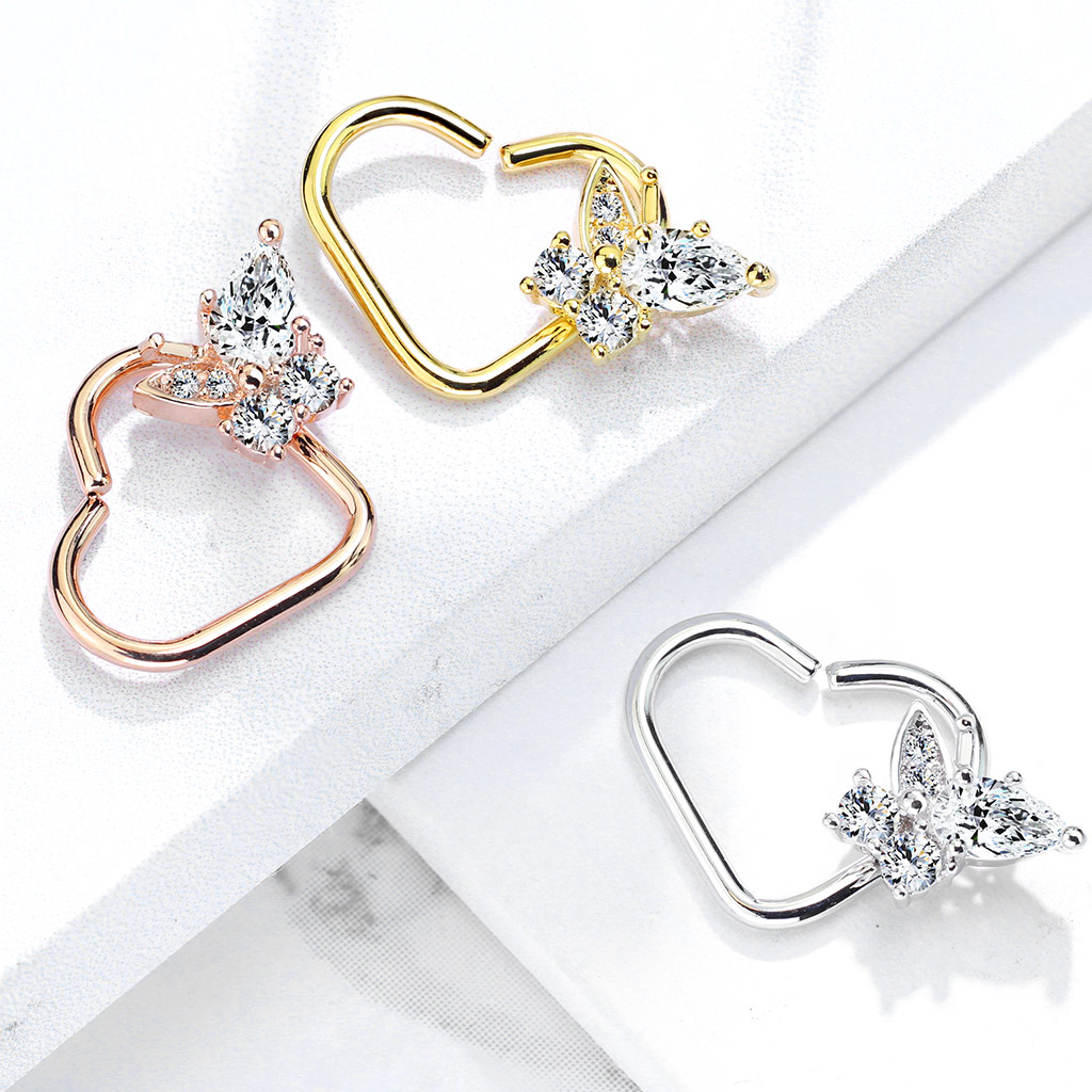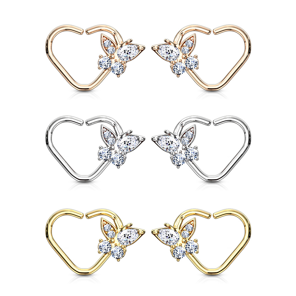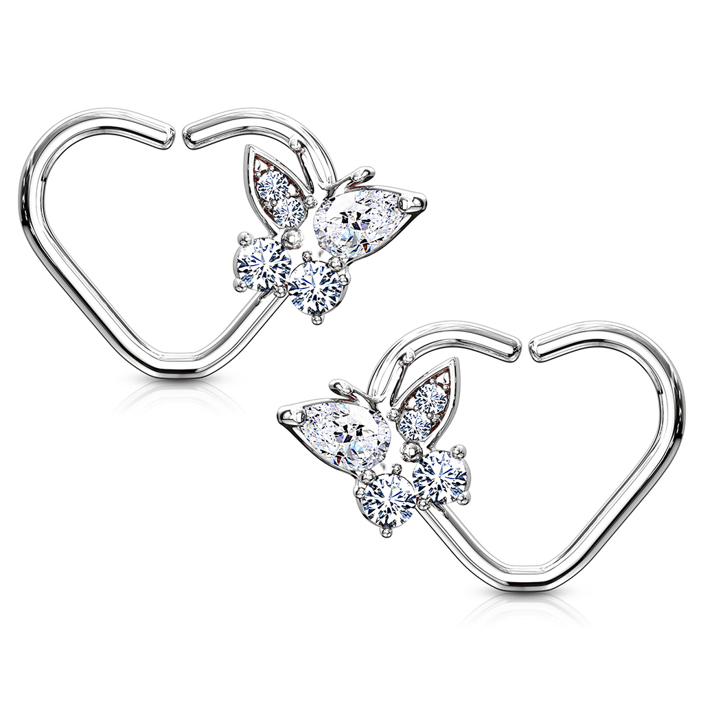 Auss pīrsings sirds formā ar no kristāliem veidotu tauriņu