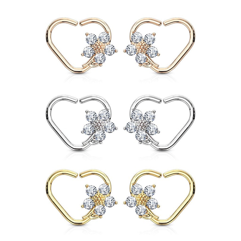Nosaukums: Auss pīrsings sirds formā ar zieda kulonu