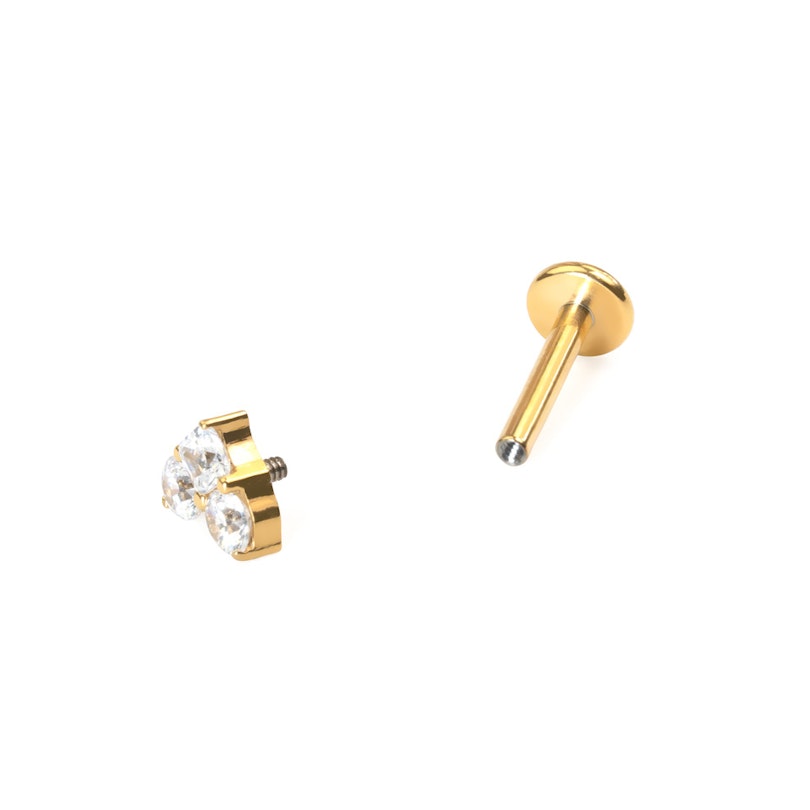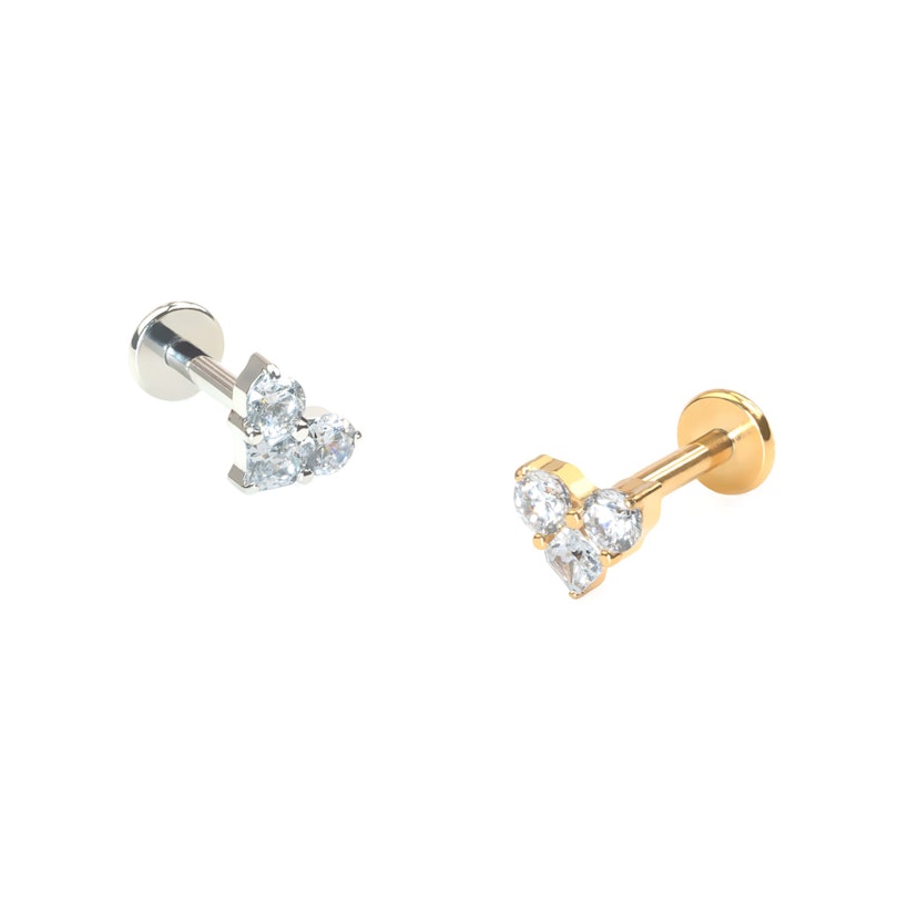 Šo titāna labreti rotā 3 cirkonija akmentiņi, kas izkārtoti sirds formā. Diviem augšējiem akmentiņiem ir apaļa forma, bet apakšējam - kvadrāta forma. Rotai ir iekšējā vītne un tā pieejama ar zelta vai sudraba krāsas pārklājumu. Šī piemīlīgā rotaslieta lieliski izskatīsies dažādos auss pīrsingos. Platākajā punktā tās izmērs ir vien 5 mm. Plakanā aizmugure nodrošina komfortablu nēsāšanu.