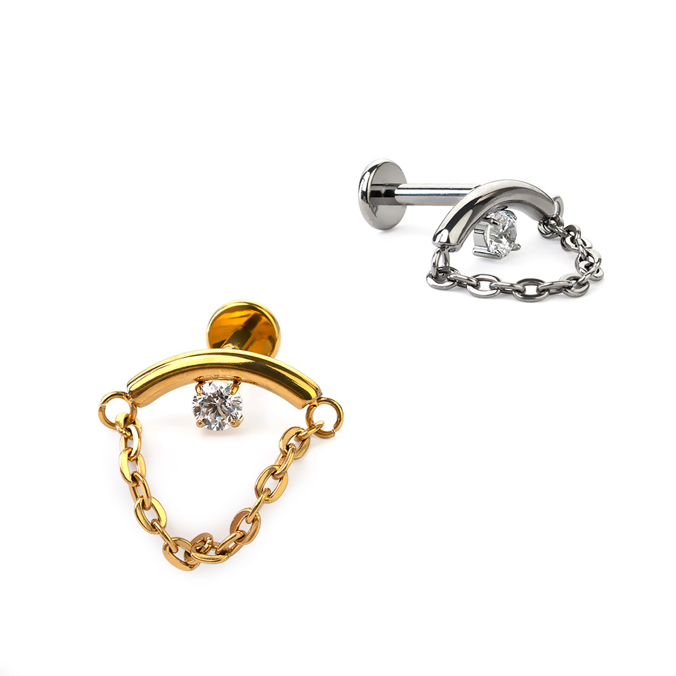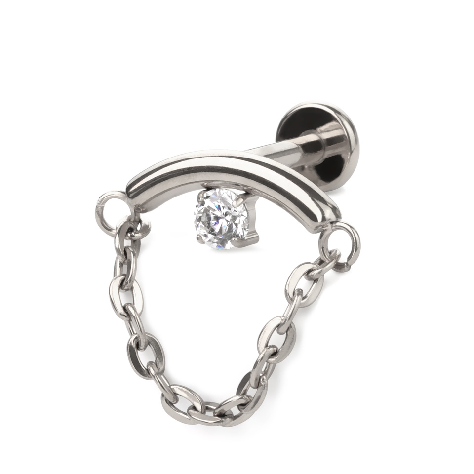 Šī labrete sastāv no izliekta stienīša un ķēdītes, kas savieno abus labretes galus un veido cilpu tās apakšdaļā. Stienīša centrā ir rāmītī iestrādāts cirkonijs. Šo labreti Tu vari nēsāt horizontāli auss ļipiņā vai arī savā helix pīrsingā, kur labrete aplieksies ap Tavas auss kontūru.