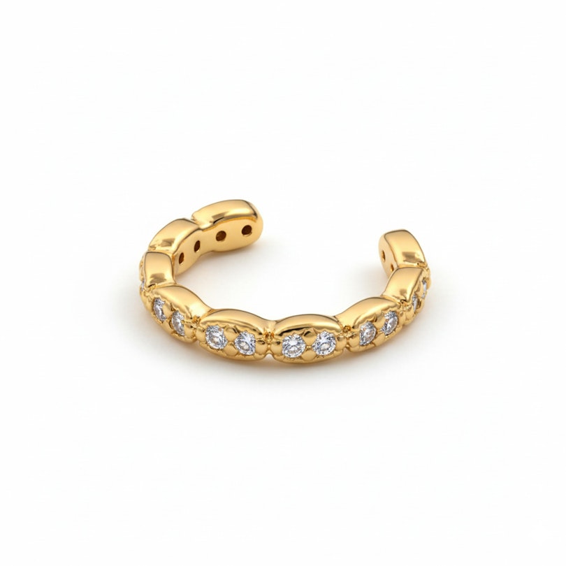 Smalkais auss kaffs ar akmentiņu pāriem ļauj radīt rotu kombināciju bez pīrsinga duršanas. Mazie akmentiņi izkārtoti pāros un iestiprināti glītās ķepiņās, kas piešķir rotai tieši tik daudz detaļu, lai tā joprojām izskatītos viegla. Kaffs ērti pieguļ ausij un to var nēsāt gan kā atsevišķu rotu, gan arī kombinēt ar citām rotām. Pieejams ar zelta vai sudraba krāsas pārklājumu.