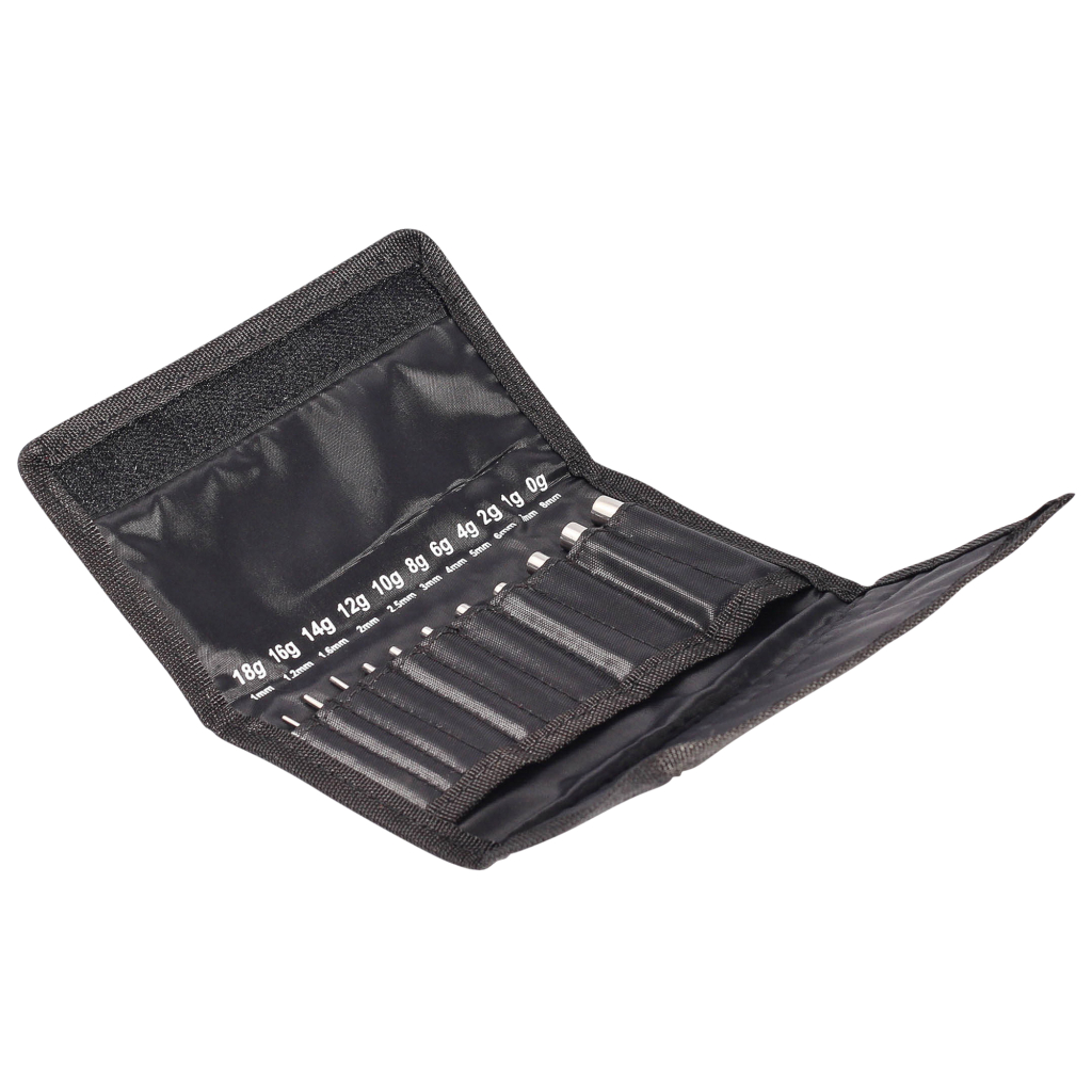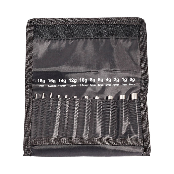 Mazā izmēra komplekts ietver sevī strečerus sākot no 18 līdz 0g (1 mm līdz 8 mm). Lielā izmēra komplekta strečeri ir, sākot no 00g līdz 13/16 collām (10 mm līdz 20 mm). Strečeriem platākajā galā ir konusa forma abos piedāvātajos komplektos, kas saskan ar tās rotaslietas biezumu, kuru jūs vēlaties ievietot. Tas nozīmē, ka strečeris, kura diametrs ir 00g (10 mm), ir 11 mm gals, kas ļaus jums viegli ievietot 00g (10 mm) izmēra rotaslietas.