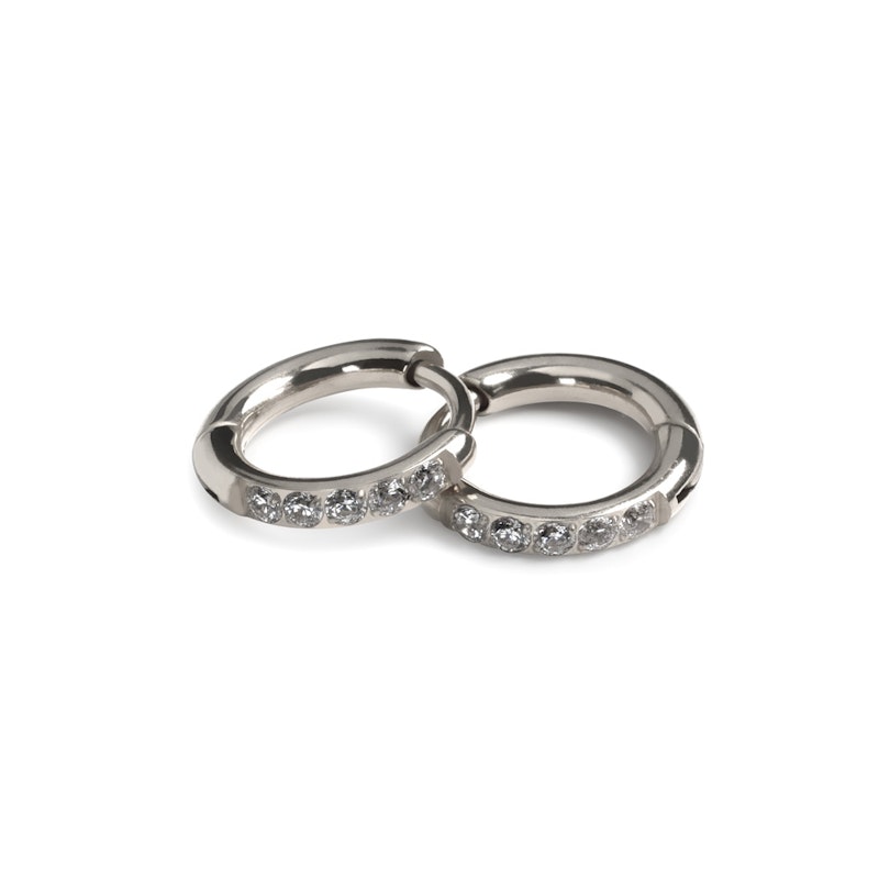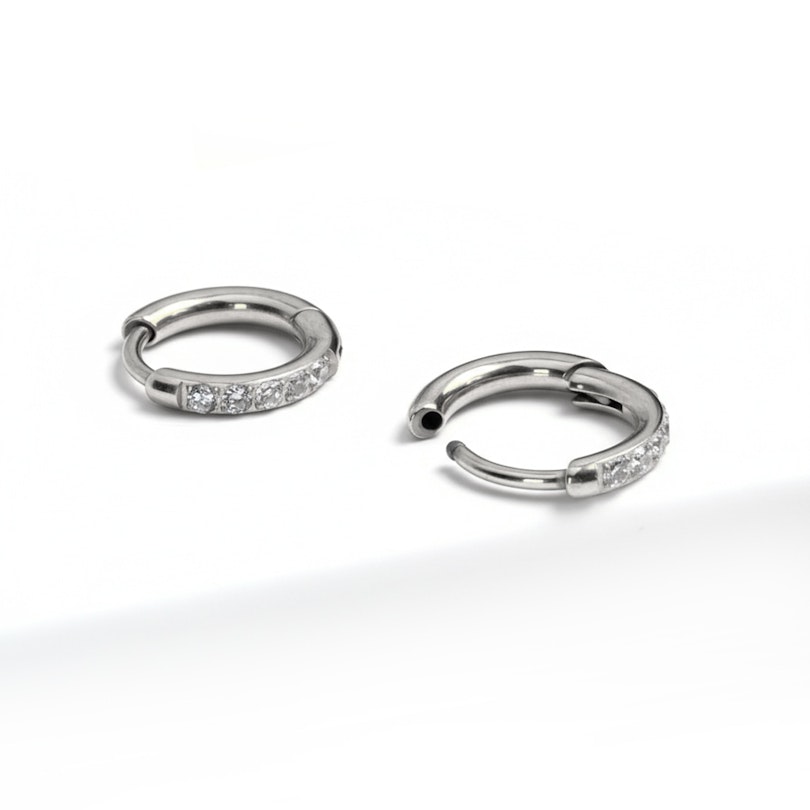 Titāna huggie pīrsingu gredzenu pāris ar akmentiņiem