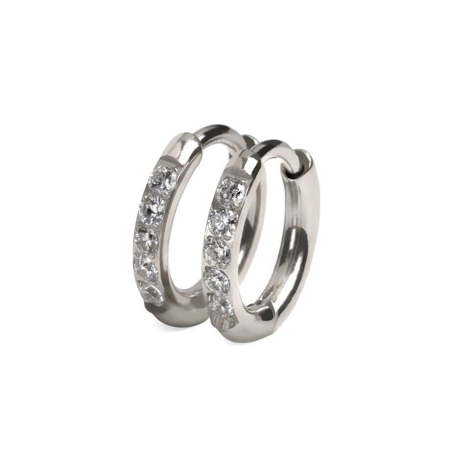 Titāna huggie pīrsingu gredzenu pāris ar akmentiņiem