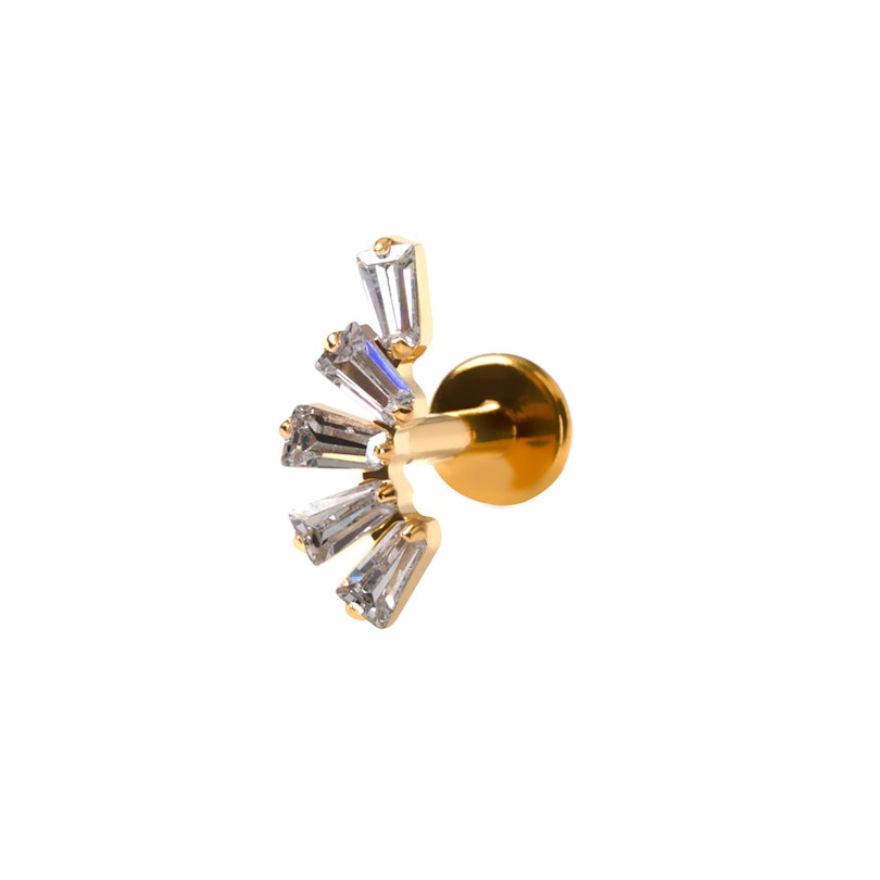 Titāna labrete ar bagetes slīpējuma akmentiņiem - radīta, lai būtu izteiksmīga. Bagetes slīpējuma akmentiņi ir vienkārši, taču izteiksmīgi, un tie skaisti mirdz Tavā ausī lai radītu sabalansētu stilu.