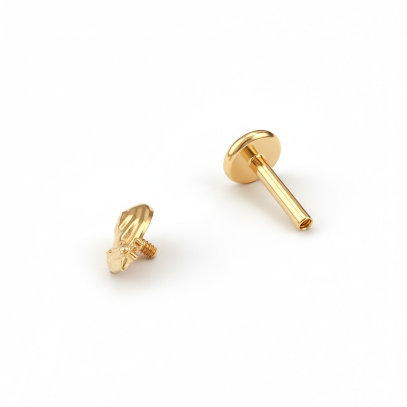 Šī labrete ir izgatavota no titāna, tāpēc tā ir hipoalerģiska, ūdensizturīga un pietiekami izturīga ikdienas nēsāšanai. Iekšējā vītne nodrošina gludu ievietošanu un drošu nostiprināšanu, tāpēc labrete turas savā vietā. Tā ir paredzēta conch, helix, auss ļipiņas un tragus pīrsingiem, turklāt plakanā aizmugure ļauj to ērti nēsāt visas dienas garumā.