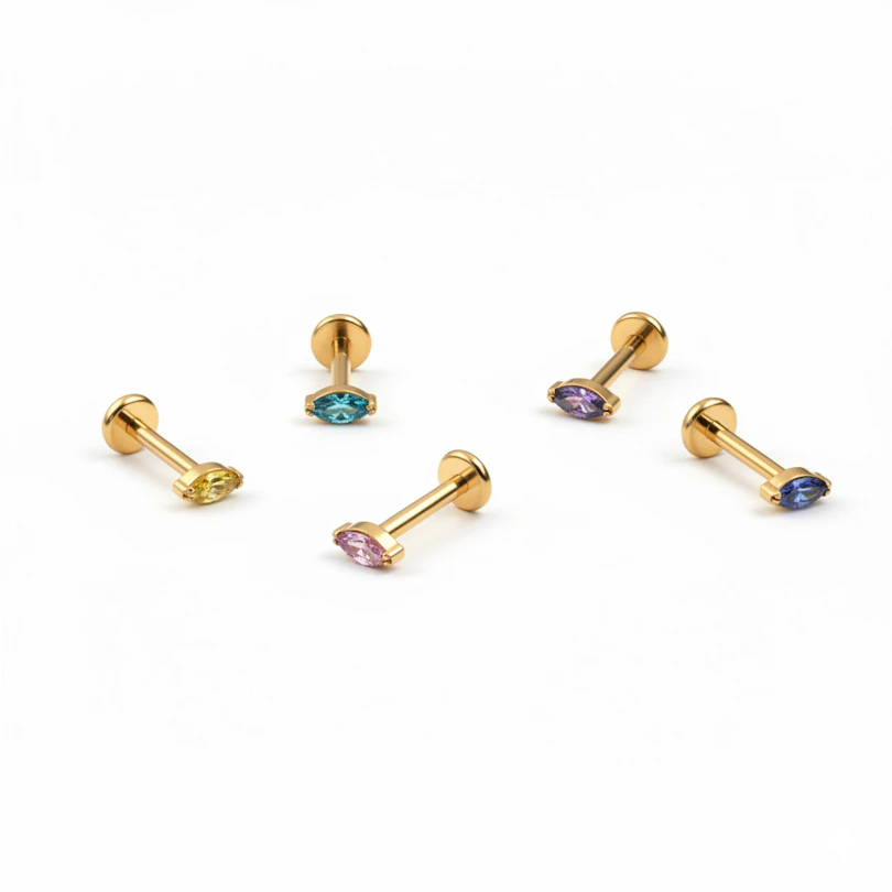 Titāna labrete ar iespēju izvēlēties akmentiņa krāsu ļauj Tev noteikt sava stila noskaņu. Gaiši rozā, zila vai jebkura cita no krāsām - izvēlies vienu vai arī paķer vairākas, lai izveidotu personalizētu auss rotu kombināciju.