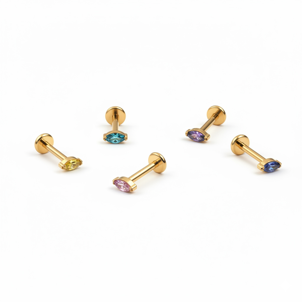 Titāna labrete ar iespēju izvēlēties akmentiņa krāsu ļauj Tev noteikt sava stila noskaņu. Gaiši rozā, zila vai jebkura cita no krāsām - izvēlies vienu vai arī paķer vairākas, lai izveidotu personalizētu auss rotu kombināciju.