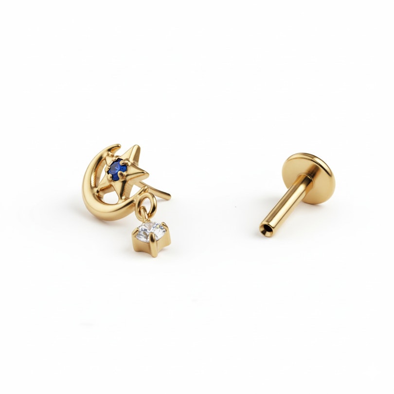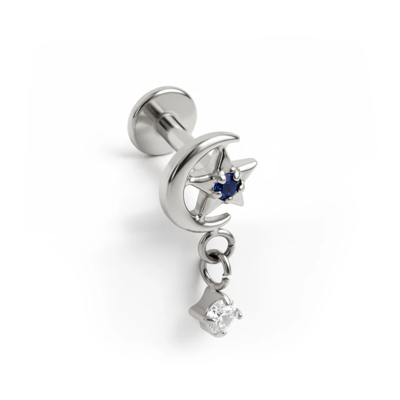 Titāna labrete ar mēnesi, zvaigzni un piekariņu piešķir Tavai ārienei nelielu kustību. Mazs mēnestiņš un zvaigznīte atrodas rotas priekšpusē, un smalks piekariņš maigi šūpojas, kad Tu kusties. Labrete ir dekoratīva un gaumīga, un tā lieliski der, ja vēlies kaut ko izteiksmīgāku. Pieejama ar zelta vai sudraba krāsas pārklājumu.