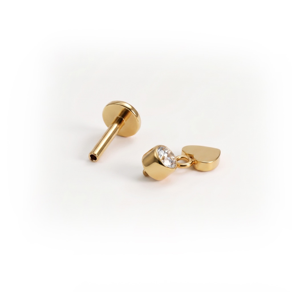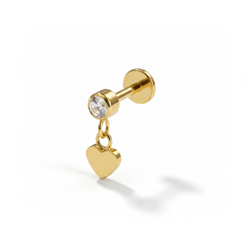 Pirmajā acu uzmetienā šī titāna labrete ar sirds piekariņu izskatās vienkārši, taču mazais akcents uzreiz maina visu tēlu. Augšpusē ir ietvarā iestrādāts akmentiņš, savukārt zem tā viegli šūpojas sirds formas piekariņš, piešķirot rotas dizainam maigu kustību. Šo labreti ir viegli nēsāt gan vienu pašu, gan kopā ar citām pīrsingu rotām. Pieejama zelta un sudraba krāsā.