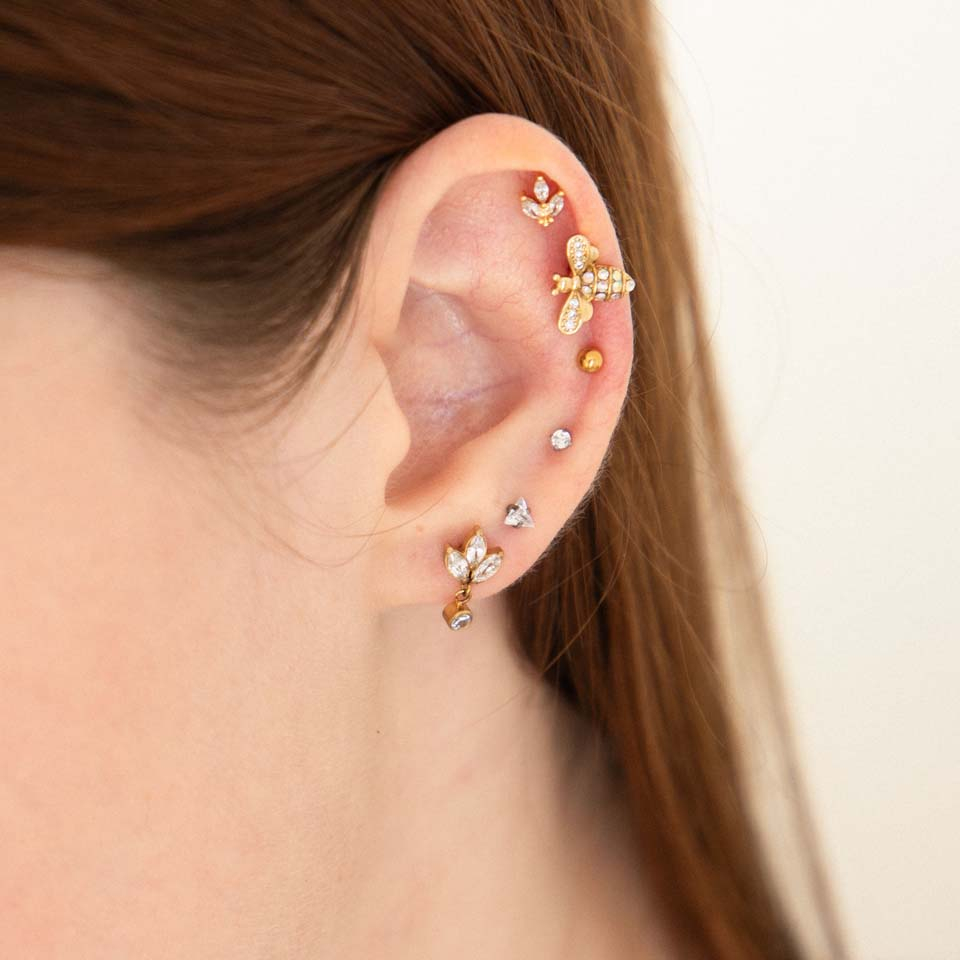Novietojums: Tragus, Auss ļipiņa, Helix