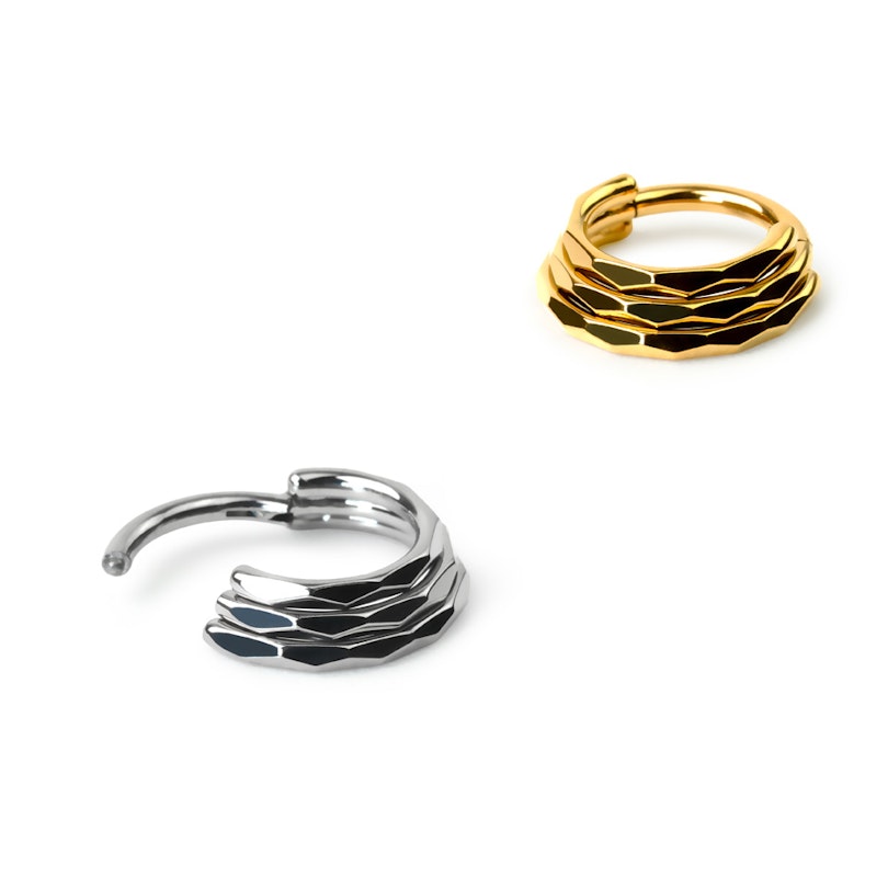 Trīskāršs daudzšķautņains pīrsingu gredzens no titāna