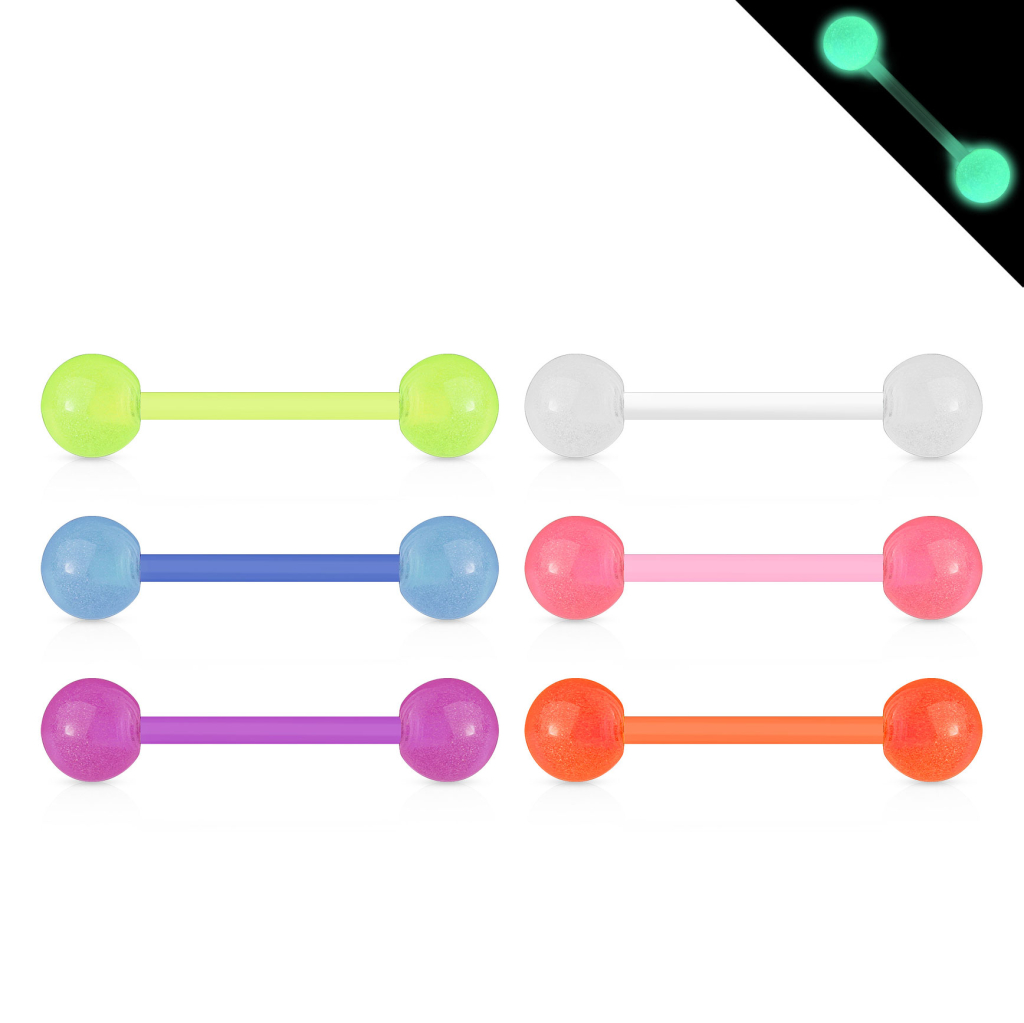 Mēles pīrsinga stienītis luminiscējošs pieejams sešās krāsās