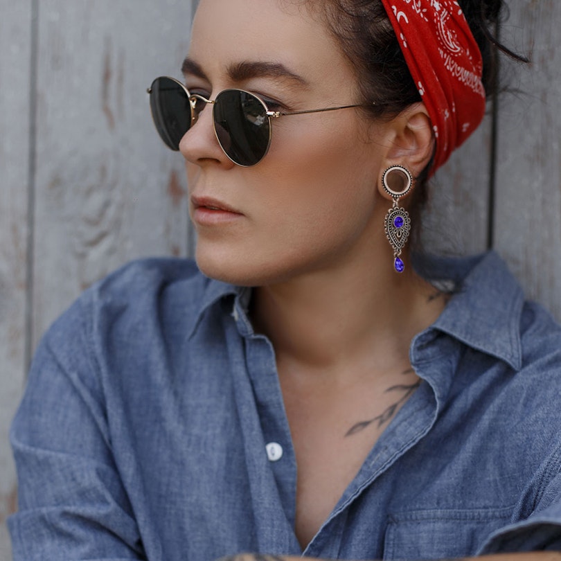 Jūs varat izmantot šo tuneli, ja jums ir izstiepts auss pīrsings, starp 2g un 5/8 collām (6 mm un 16 mm), abus ieskaitot. Tunelis ir izgatavots no ķirurģiskā tērauda un tā priekšpusē ir misiņa lodīšu riņķis. Piekariņš ir izgatavots no misiņa.